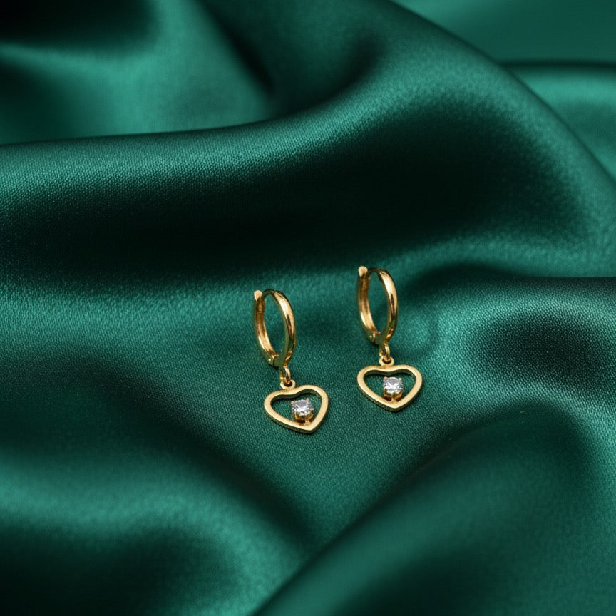 Delicate and timeless, these Golden Heart Crystal Drop Hoop Earrings are designed to add a touch of sparkle and romance to your everyday style. Featuring a sleek gold mini hoop with a dainty open-heart charm and a sparkling crystal at its center, these earrings capture elegance in its simplest form. Their lightweight design and graceful movement make them a perfect choice for both casual and dressy looks.